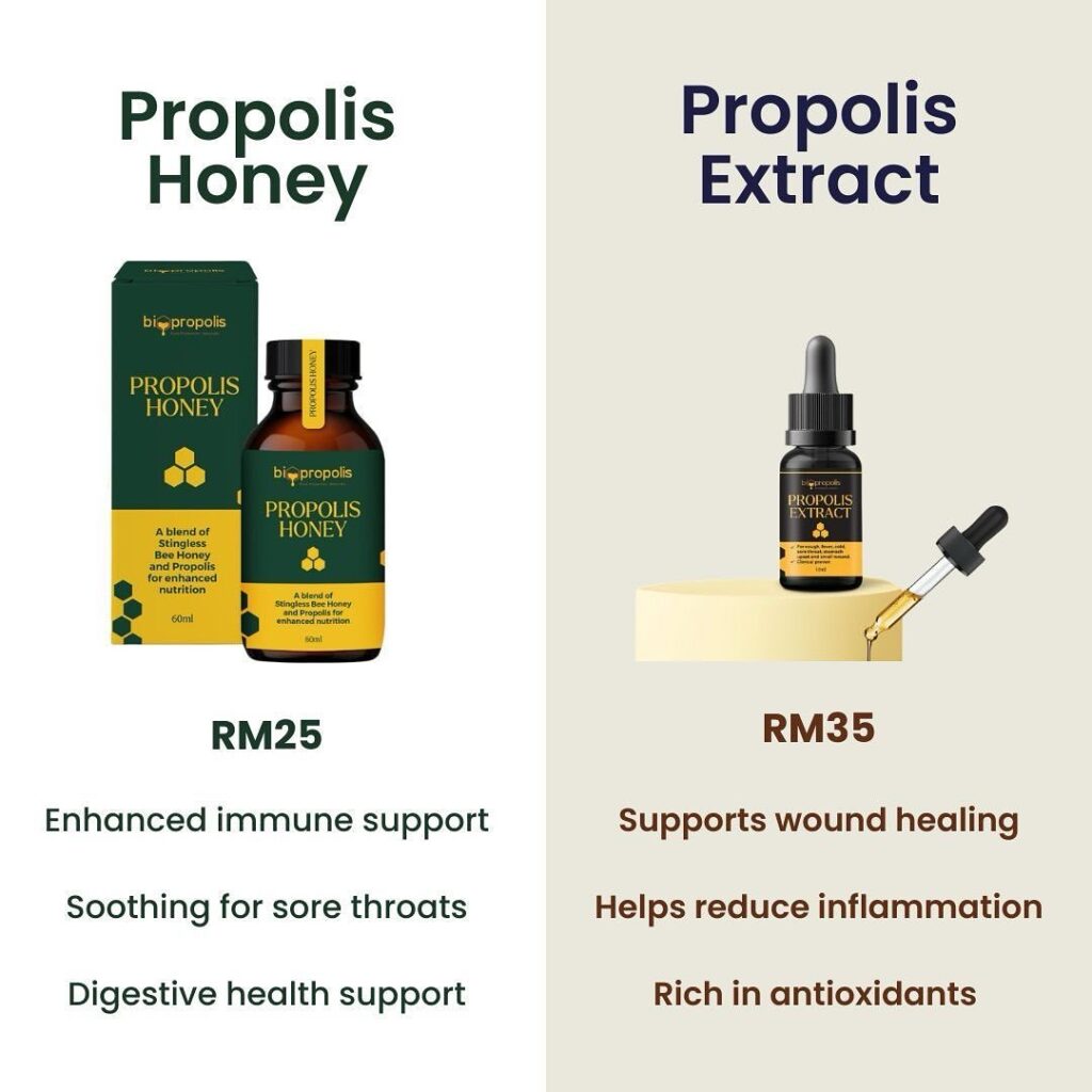 Propolis honey dan propolis extract merupakan antara bahan semula jadi paling berkuasa yang telah digunakan sejak ratusan tahun untuk menyokong kesihatan, melawan jangkitan, dan melindungi tubuh secara semula jadi.